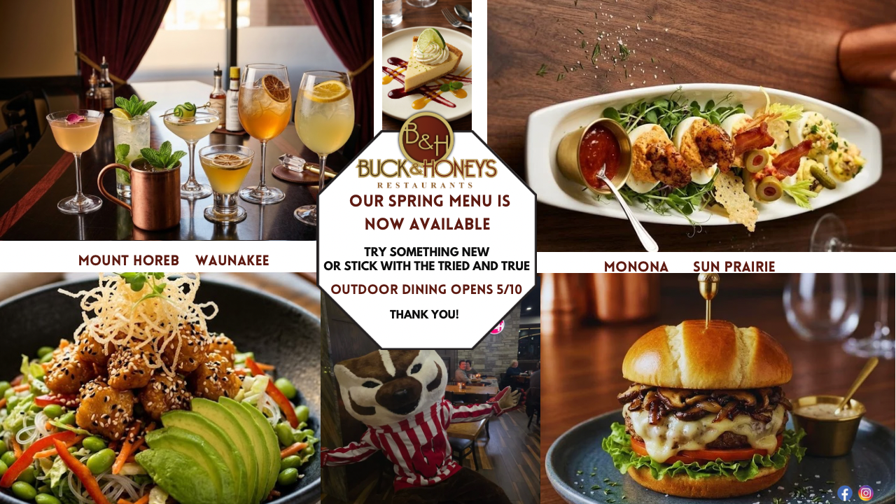Buck and Honey Birkinbine were one of the area’s best-known residents. They once owned and farmed the land where our first location in Sun Prairie sits today. Together they lived a life of service and philanthropy in the community and they were always well known to enjoy hosting good company at their home on Windsor Street. It is in their spirit that we present to you Buck & Honey’s Restaurants.